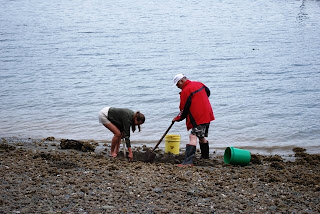 So here I am all ready to cook up another batch of PVCs (unfortunate acronym – plastic pipe?) but we only uncovered four of edible size. That’s not because they weren’t out there, the tide wasn’t low enough. My non-scientific observation is that they prefer either less rocky locations or deeper water. We’d have found plenty if the tide had gone down a few more feet.