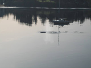 You can see a whale’s wake when it’s under water. I tried to take a picture of it, but my little camera wasn’t really up to the task.